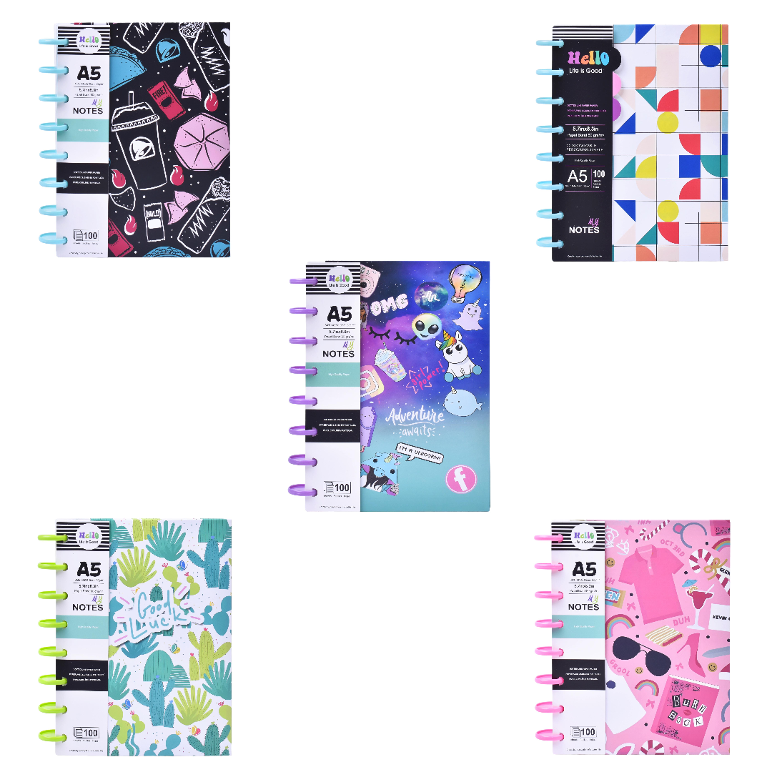 Este caderno de tamanho A5, ideal para escrever com conforto em qualquer página.