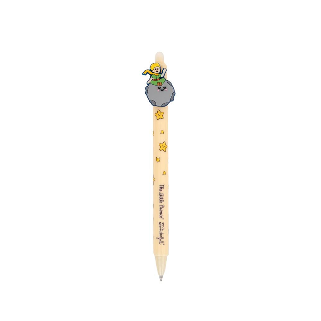Escreve, apaga e deixa-te levar pela magia de uma história intemporal ✨ Esta esferográfica com tinta azul apagável é decorada com uma encantadora figura 3D de O Principezinho sentado no seu planeta, tornando cada momento de escrita ainda mais especial.