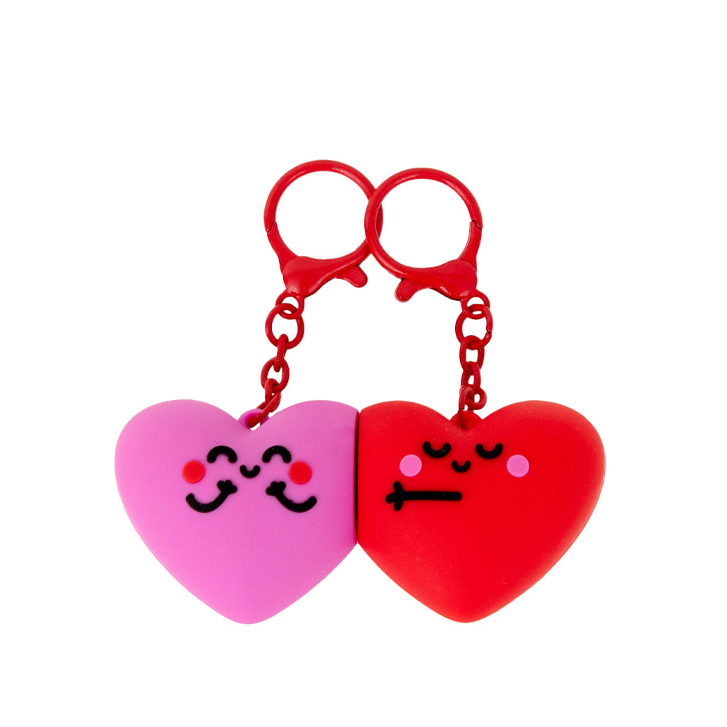 Um par perfeito para partilhar com alguém especial! Este conjunto inclui dois porta-chaves em forma de coração, que se unem graças aos ímanes internos — basta aproximá-los e clic, ficam juntinhos. 💕