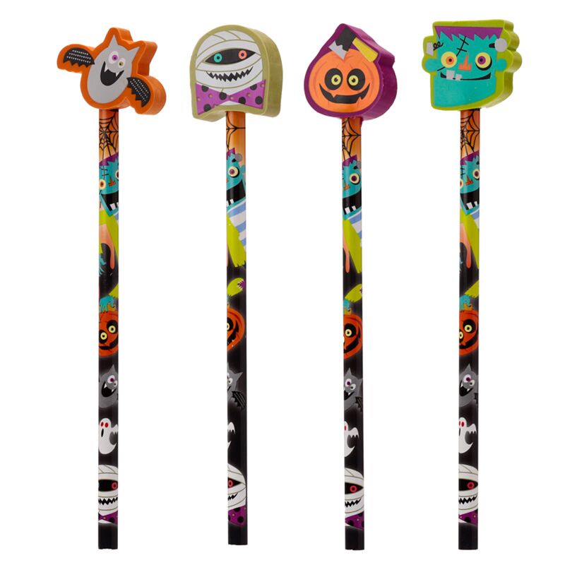 Entra no espírito do Halloween com estes lápis assustadoramente divertidos! Cada um vem com uma borracha temática no topo, perfeita para dar um toque arrepiante (e adorável!) aos teus apontamentos. 🖤✏️
